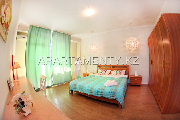 2-room apartment for rent in the center of Almaty, in a new gated residential complex located on the Bolshaya Almatinka embankment, ideal for outdoor activities and hiking. Sleeps - 4. The apartment has everything you need for a comfortable stay: 2 separate bathrooms, high-speed Internet, wi-fi, broadband, disposable hotel kits (disposable, slippers, soap, shampoos), household appliances, beds, stoves and all sorts of dishes necessary for cooking and eating, washing machine, cleanliness, pastel linen and towels. Very clean and cozy.