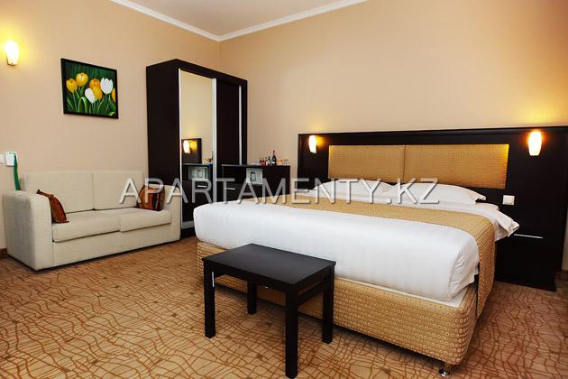 King Standard- (king bed) – comfortable, equipped with modern technology, adjustable heating, air conditioning, satellite television, high speed internet WI-FI, working area, mini-bar, digital safe, 24-hour room service, soft, heavy curtains, electronic key. Bathroom equipped with shower, hair dryer. The price includes breakfast (buffet).