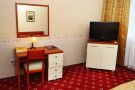 Comfortable single room, which contains a double bed and a dresser, and a plasma TV.