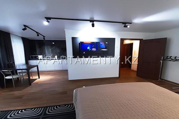 Rent of 1-bedroom apartment in Ust-Kamenogorsk. This apartment has very convenient location in the business and shopping center of Ust-Kamenogorsk, squared streets Auezova, Krylov, Victory Ave. Apartment Suites, elevator. All appliances, cable TV. Cleanliness and comfort are guaranteed.