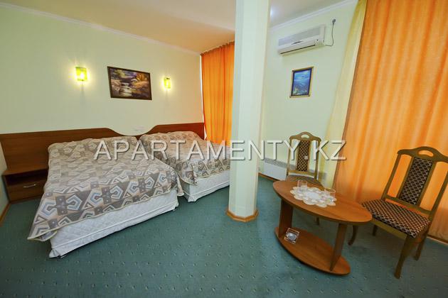 Комфортабельный номер на две персоны оборудован: удобными, большими и мягкими кроватями класса люкс, ванной комнатой с душевой кабинкой, системами обогрева и кондиционирования, жк-телевизором, многоканальным кабельным...