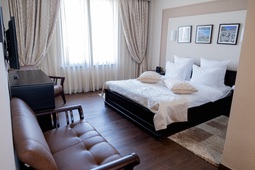 Светлые номера оформлены в современном стиле, в теплых тонах и оснащены кондиционером, телевизором и мини-баром, а также в распоряжении гостей собственная ванная комната с халатом и тапочками.