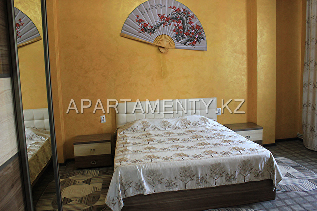 Номер оборудован двухспальной кроватью, мягким уголком, телевизором со спутниковым TV, банными халатами с одноразовыми тапочками и необходимыми мыльными принадлежностями.