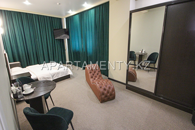 Номер с уникальным элементом интерьера — креслом тантра, которое добавляет элегантности и уюта в пространство. Это кресло с необычным дизайном идеально подходит для отдыха и расслабления, предлагая комфортную посадку и стильный вид. Современный ремонт, стильная мебель и тщательно подобранные детали создают атмосферу уединения и гармонии. Уютная обстановка, удобные удобства и кресло тантра делают номер идеальным местом для полноценного отдыха.