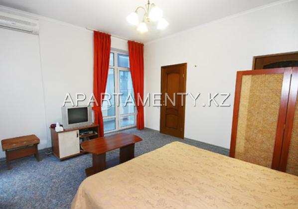 Комфортабельный двухкомнатный номер оснащен удобной и красивой мебелью и необходимой техникой. Номер состоит из комнаты отдыха, лоджии, спальной комнаты и ванной.