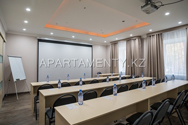 Конференц-зал оборудован флип-чартом, экраном, проектором, маркерной доской, ноутбуком и звуковой системой.