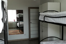 Женский номер содержит в себе 6-ь спальных мест (3-и двух ярусные кровати). Абсолютно чистая и новая постель, персональные полотенца для рук, новая гладильная доска и качественный утюг. Персональные шкафчики на замках.