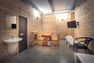 В общественной бане 2 парные: финская парная (сухой пар) и турецкий хамам (влажный пар). Помимо парных в бане имеется комната отдыха, раздевалка, обливное ведро, душевые, телевизор, фэн, чайник. Стоимость с человека 2000 тенге в будние дни, 3000 тенге в выходные на 3 часа (в стоимость входит простыни и сланцы).