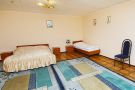 Комфортабельный, светлый, просторный номер с прихожей, двумя спальнями. В одной спальне - большая двуспальная и раздельная кровать, прикроватные тумбочки. Во второй спальне кресла для отдыха и кровать.